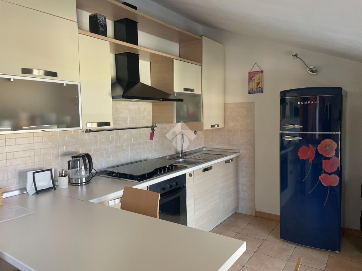 Collocato in zona residenziale, a due passi dai principali servizi. L'immobile, di recente costruzione, è posto al piano secondo e ultimo. La zona giorno dal taglio regolare ospita la cucina ed il living. Il disimpegno accompagna alla zona notte formata dalla camera matrimoniale e dal bagno completo di sanitari e box doccia. In buono stato, si completa di box doppio in lunghezza e cantina posti al piano interrato. Termoautonomo, con sistema di riscaldamento tradizionale a radiatori. Arredato e corredato.
