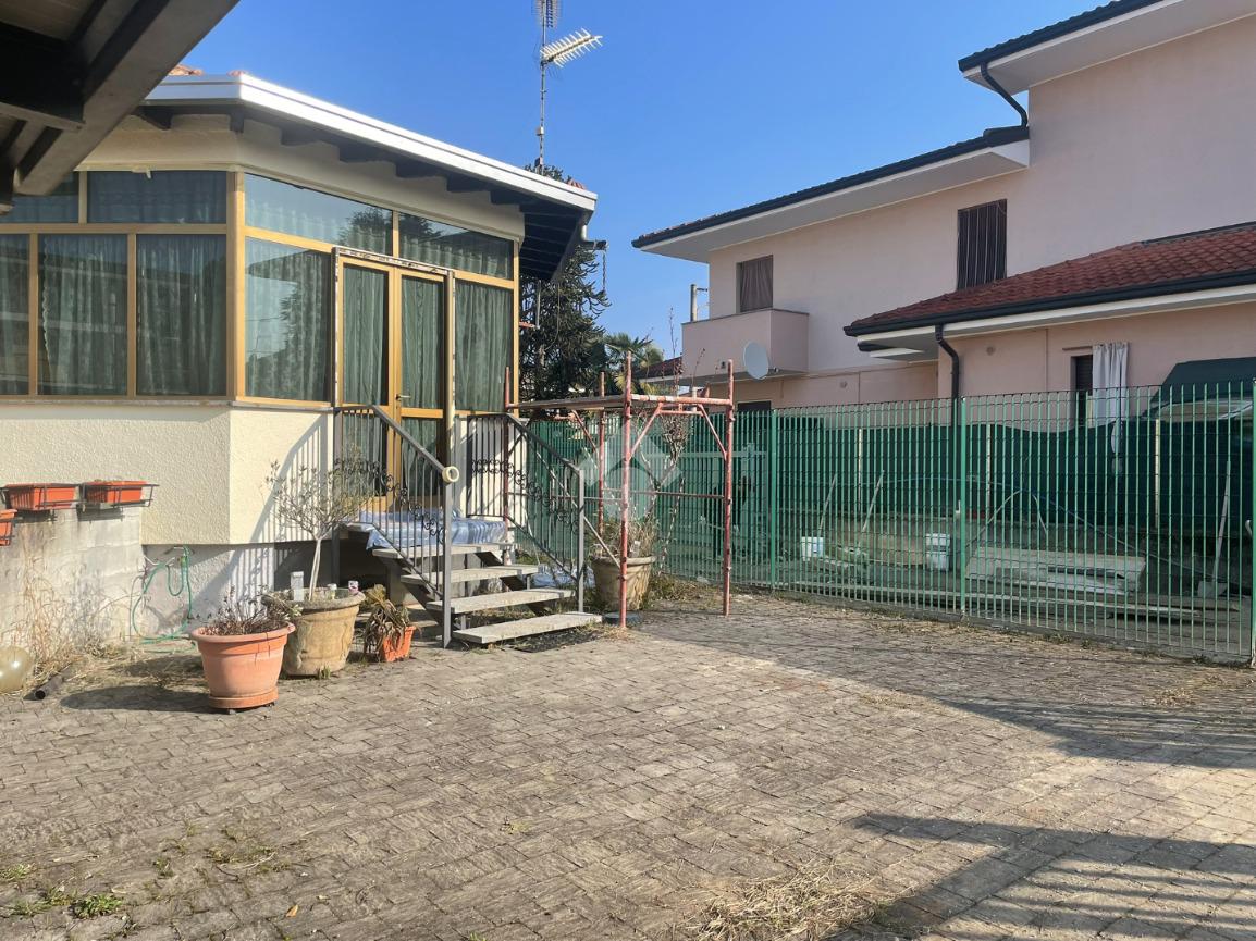 Posizionata in zona residenziale allo stesso tempo comoda per i principali servizi, la soluzione è valorizzata dalla presenza di un'area esterna privata sul fronte dell'abitazione. Libera su quattro lati, è favorita da una totale indipendenza. Una luminosa veranda anticipa l'abitazione. Ideale per chi è alla ricerca di un piano abitativo su unico livello, è formata da soggiorno, cucina abitabile, due camere matrimoniali e bagno completo di sanitari e box doccia. A completamento della proprietà, troviamo un'ampia cantina seminterrata da personalizzare.